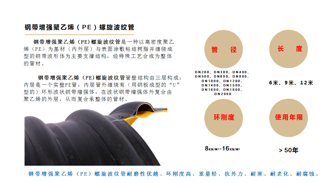 弘祥地下排水污水专用管,钢带提高螺旋波纹管HDPE螺旋波纹管的特色