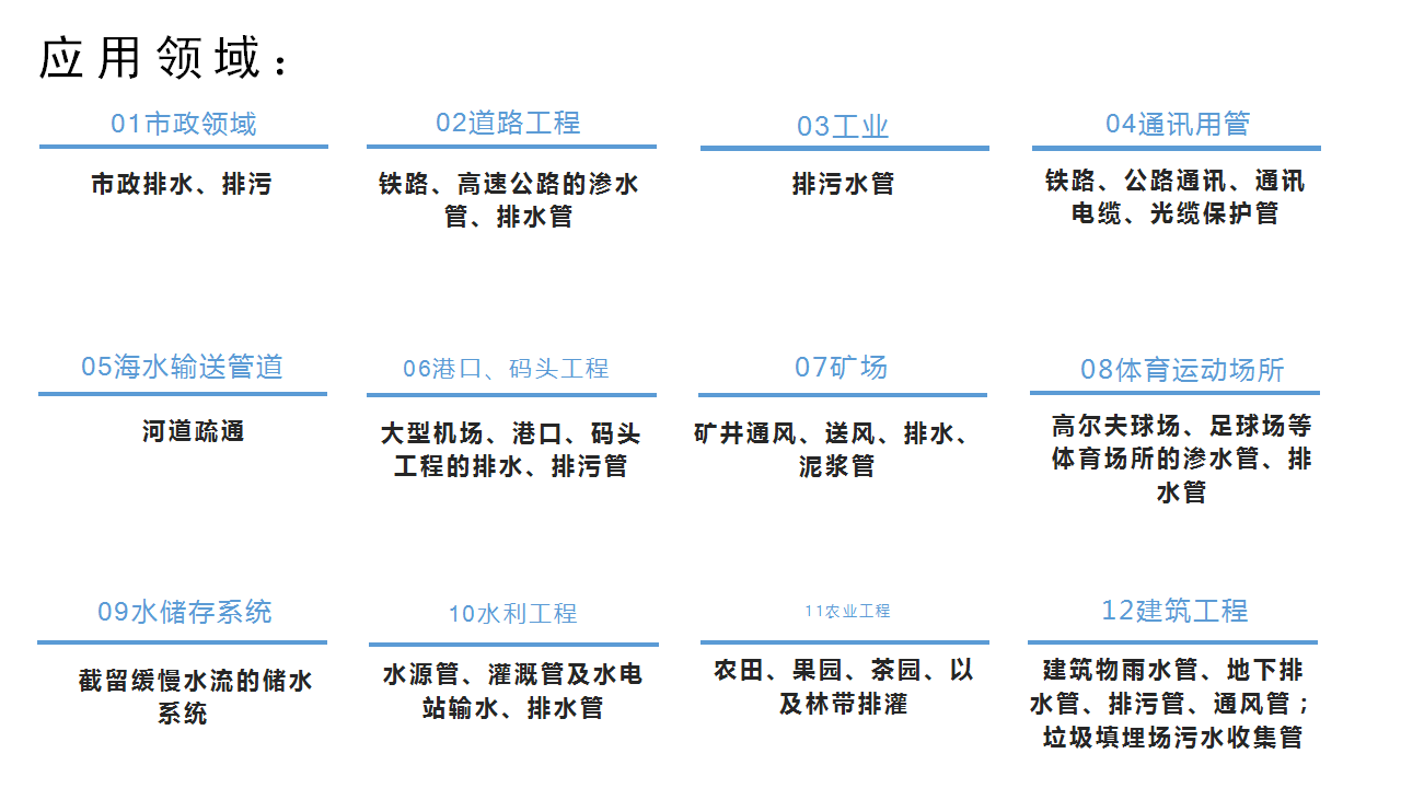 11,管道系统具有不错的稳定性:管道的圆形外肋构造不仅增加了管道的环刚度,而且具有根部阻力,化解了管道纵向位移引起的张紧和顶进的疑问。
