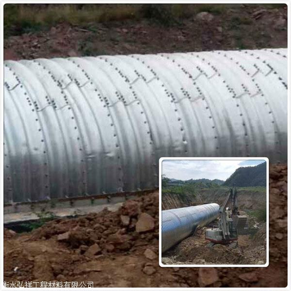 ③使用寿命长,波纹钢钢涵使用钢管热浸镀锌,使用寿命长,使用寿命80-100年。当在特别腐蚀性的环境中使用时,使用的钢的内表面和外表面都隐含一层沥青,波纹管可以在原始使用寿命的根基上增加20年以上。